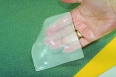 Crystal Clear Polymer Gel contains pressure-sensitive, medical-grade mineral oil adhesive backing. Apply gel to skin. Pressure- and shear-absorbing interface. Cuts to size. Contours. 1/8″ x 4″ x 4″. (3.2mm x 10.2cm x 10.2cm)